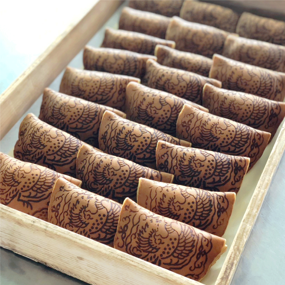 明治天皇が伊勢神宮にご参拝の折、ご成婚の祝い菓子として桐葉山を献上しました。伊勢湾の新鮮な青海苔と宇治の抹茶を使った贅沢な味わいは今も人気の商品です。